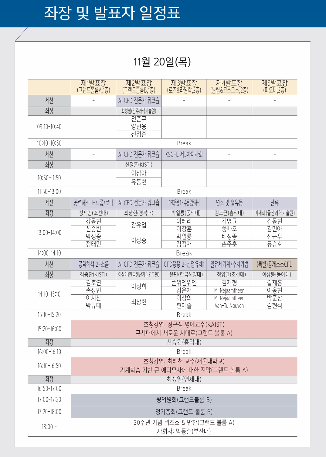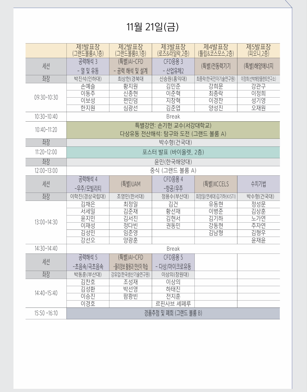 1) 구두 발표 - 발표장 및 시간 사전 확인 필수(아래의 발표자 일정표 확인) *일부 세션의 발표순서 변동이 있으므로 반드시 발표시간을 확인해 주세요. - 발표장 내 노트북 구비 - 젠더(c타입) 등 발표 필요 물품 개인 지참